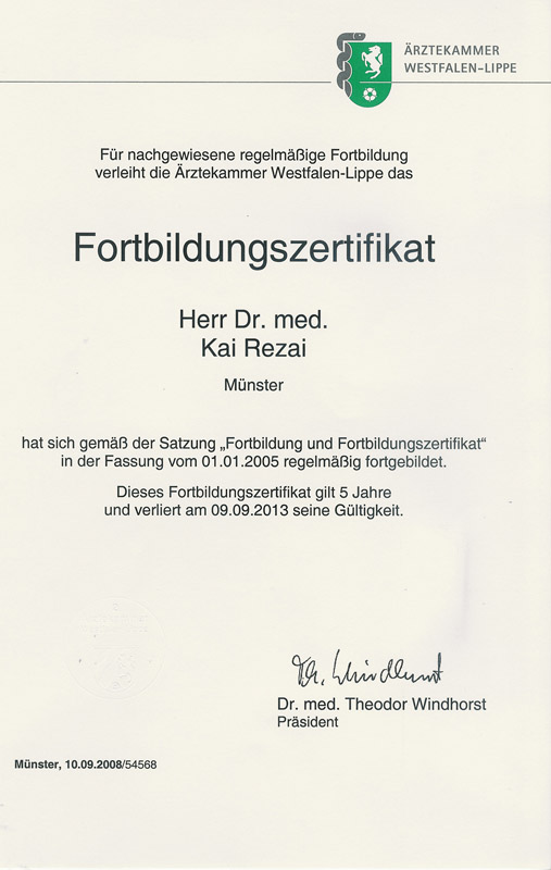 • 2013 Änderung in Praxis Dr. med. Kai Rezai; Münster